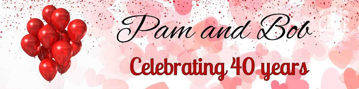 Perfect for a ruby wedding anniversary celebration, we have a great range of 40th anniversary balloons, banners, confetti and cake decorations in our Tamworth party store.