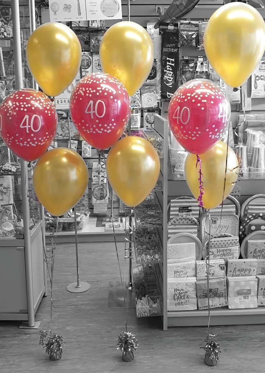 We can help you to design the perfect 40th birthday balloon display. There are so many different types to choose from: