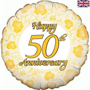 Perfect for a golden wedding anniversary celebration, we have a great range of 50th anniversary balloons, banners, confetti and cake decorations in our Tamworth party store.