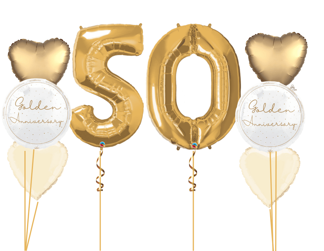 Our large number balloons come in gold, which is the perfect colour for a golden wedding anniversary.