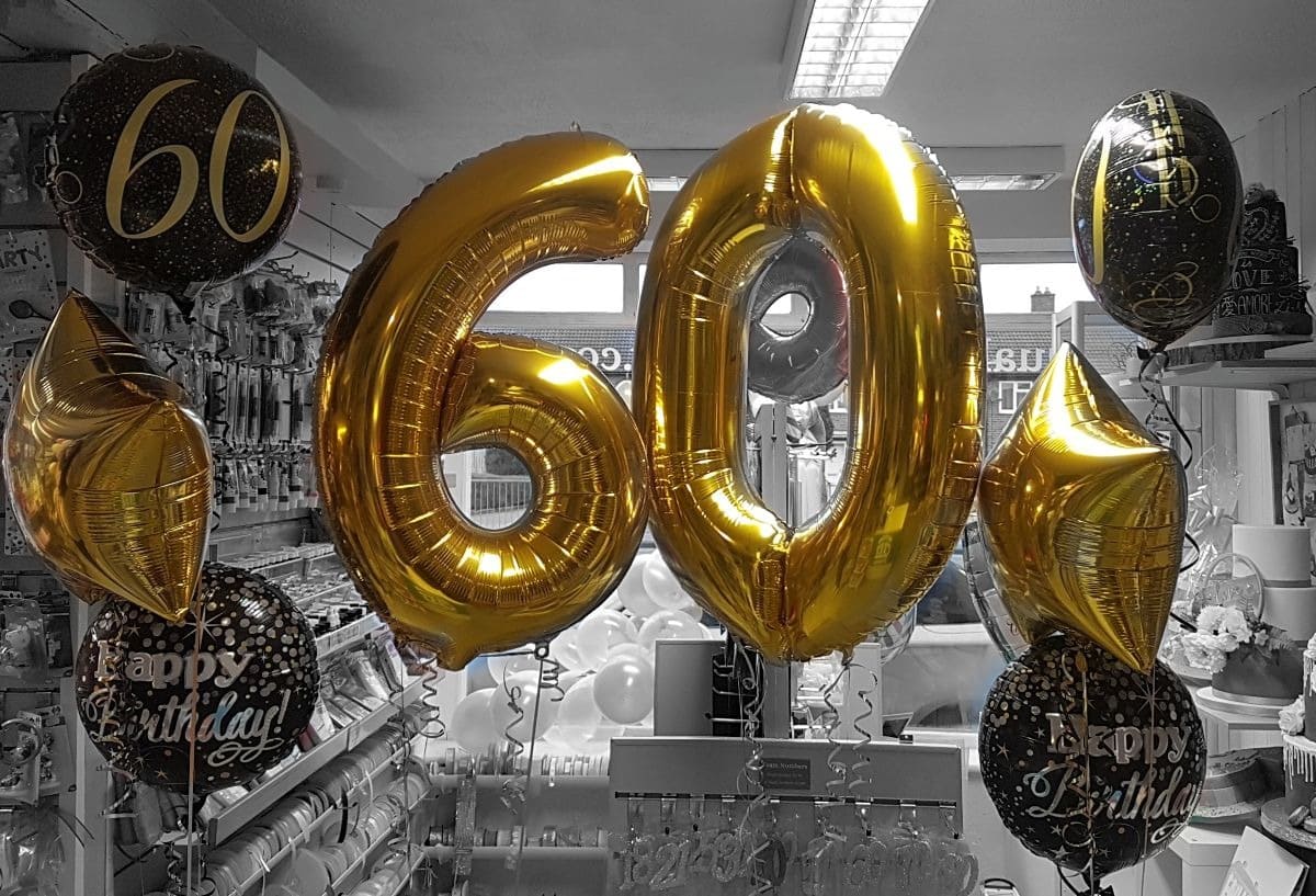 We can help you to design the perfect 60th birthday balloon display. There are so many different types to choose from: