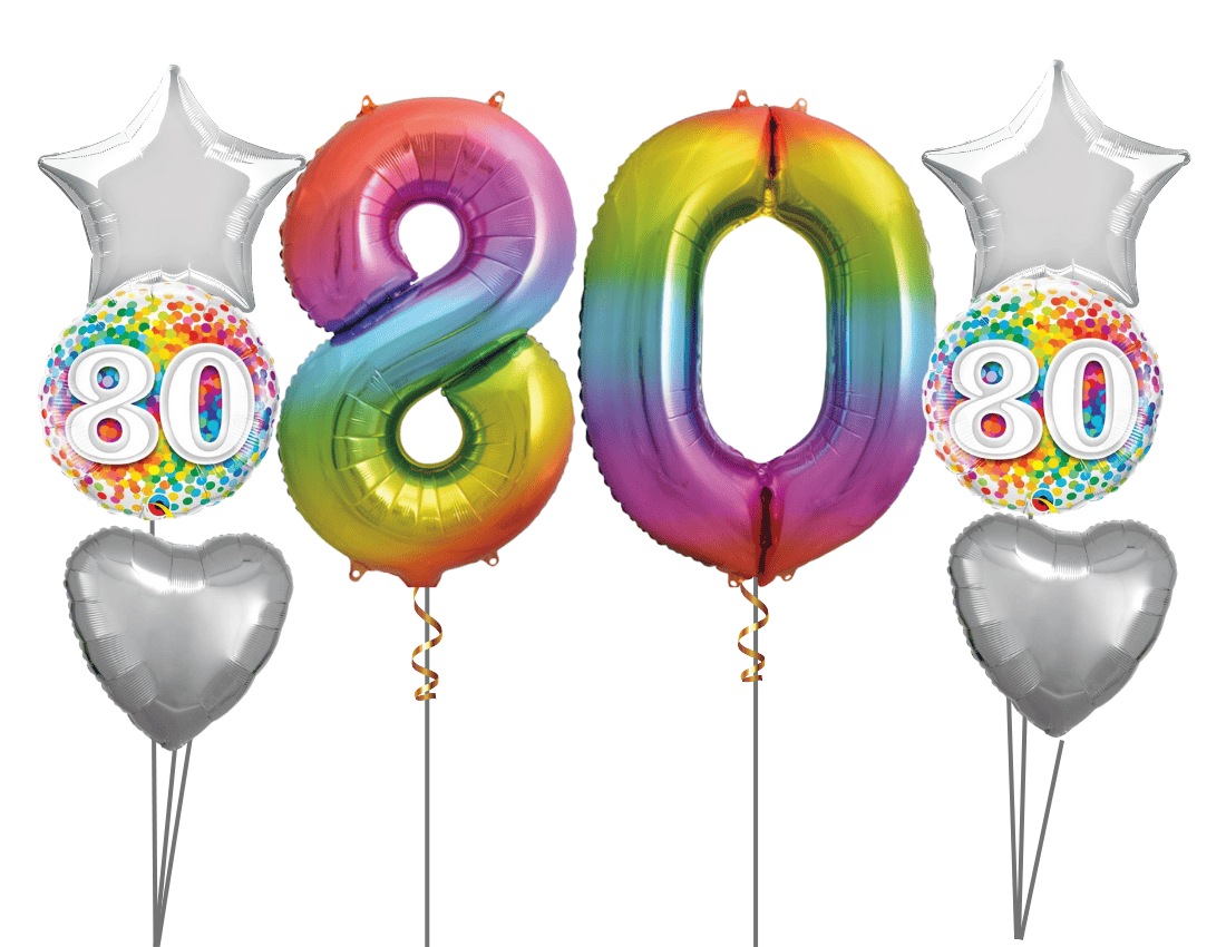 We can help you to design the perfect 80th birthday balloon display. There are so many different types to choose from: