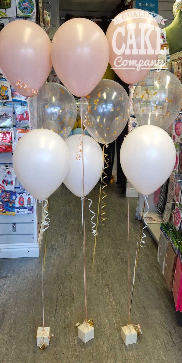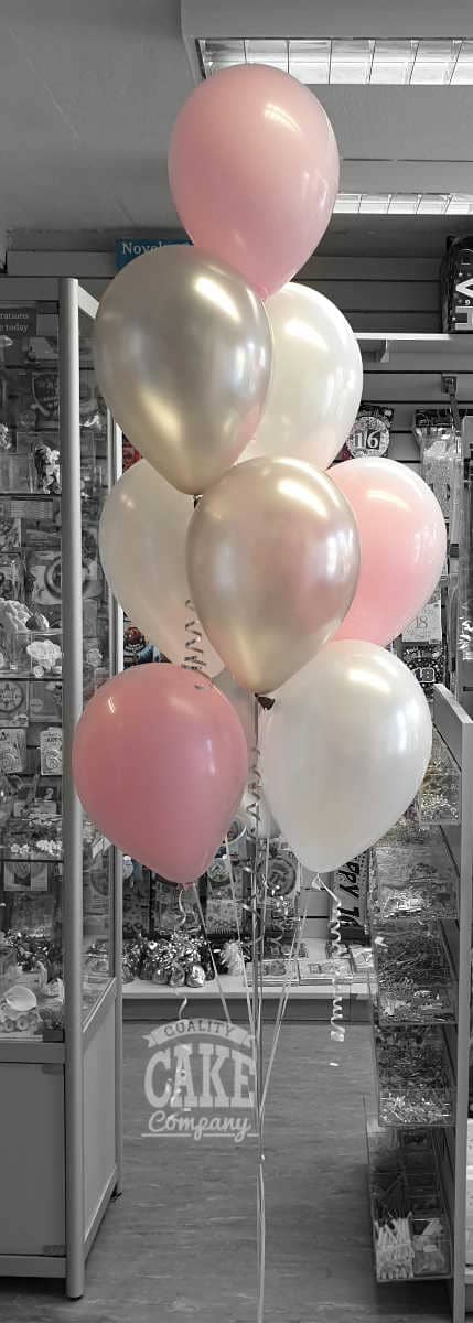- Matching bunches of balloons – blues, pinks, soft grey and rose gold are popular