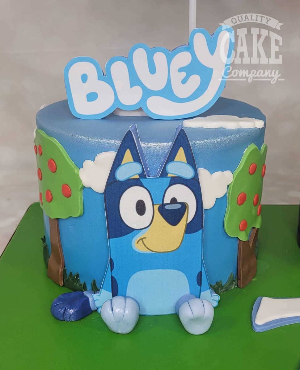 You can have simple, yet effective, 2D cake designs through to 3D fondant figures and even shaped cakes like the Bluey-shaped cake or even a number cake.