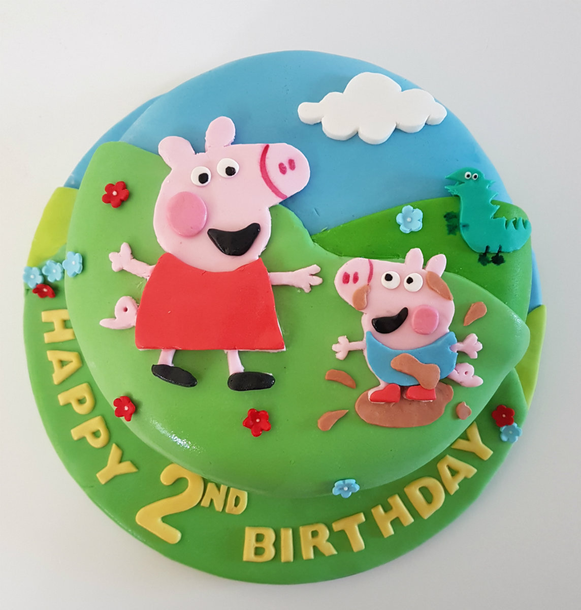 You can have simple, yet effective,  2D cake designs through to 3D fondant figures and even shaped cakes like the Peppa Pig shape cake or even a number cake.