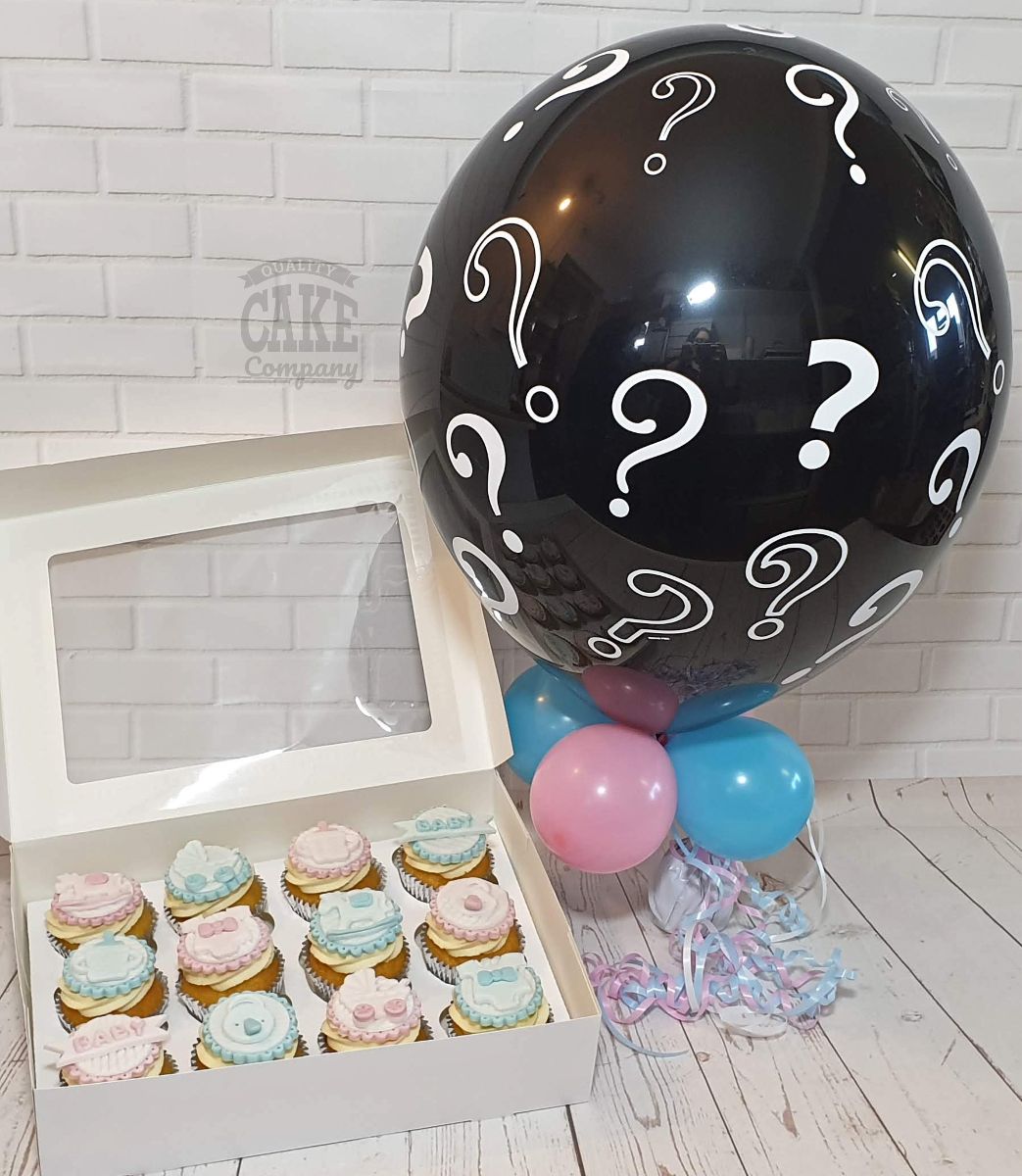 We also offer gender reveal balloons which can be complemented with delicious baby theme cupcakes for your gender reveal party.