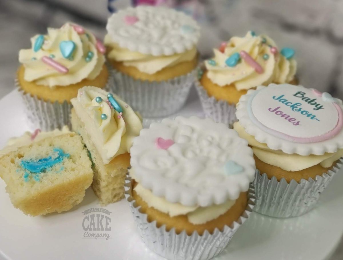 Whether you’re revealing to the world, just a few close friends, or even surprising yourself, we can make the moment unforgettable. Imagine cutting into a beautifully decorated cake and seeing that first flash of colour — the squeals, the smiles, and maybe even a few happy tears! We can also coordinate your cake with matching cupcakes, biscuits, or treats for the ultimate party spread.