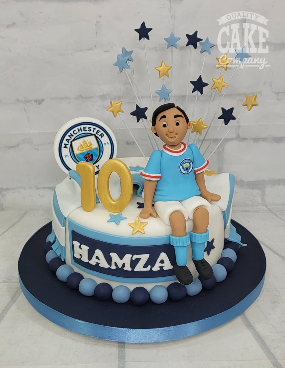 From shirts to starbursts , we can create a fantastic football-themed cake to match their favourite team’s colours.