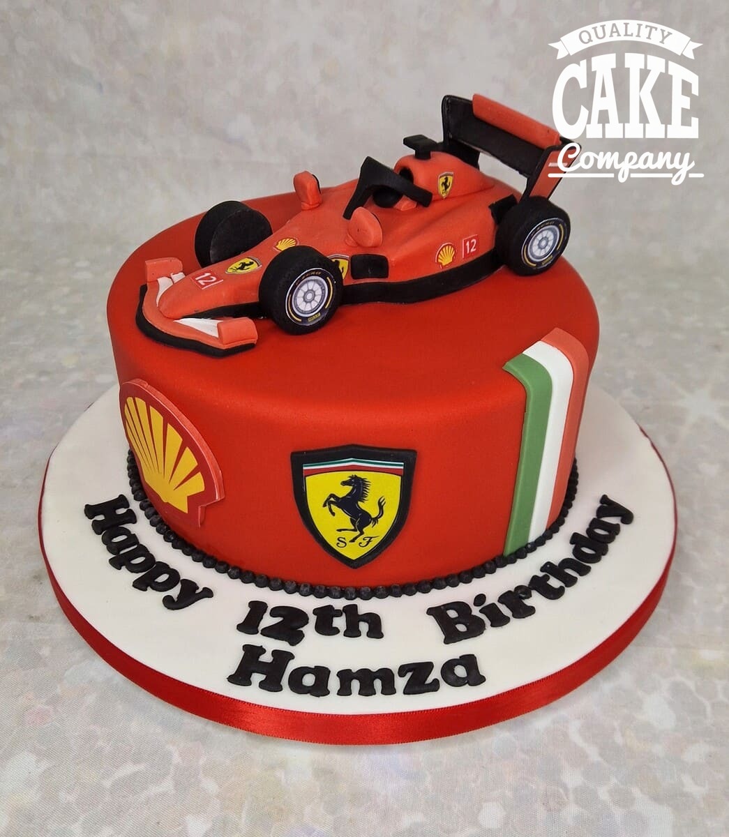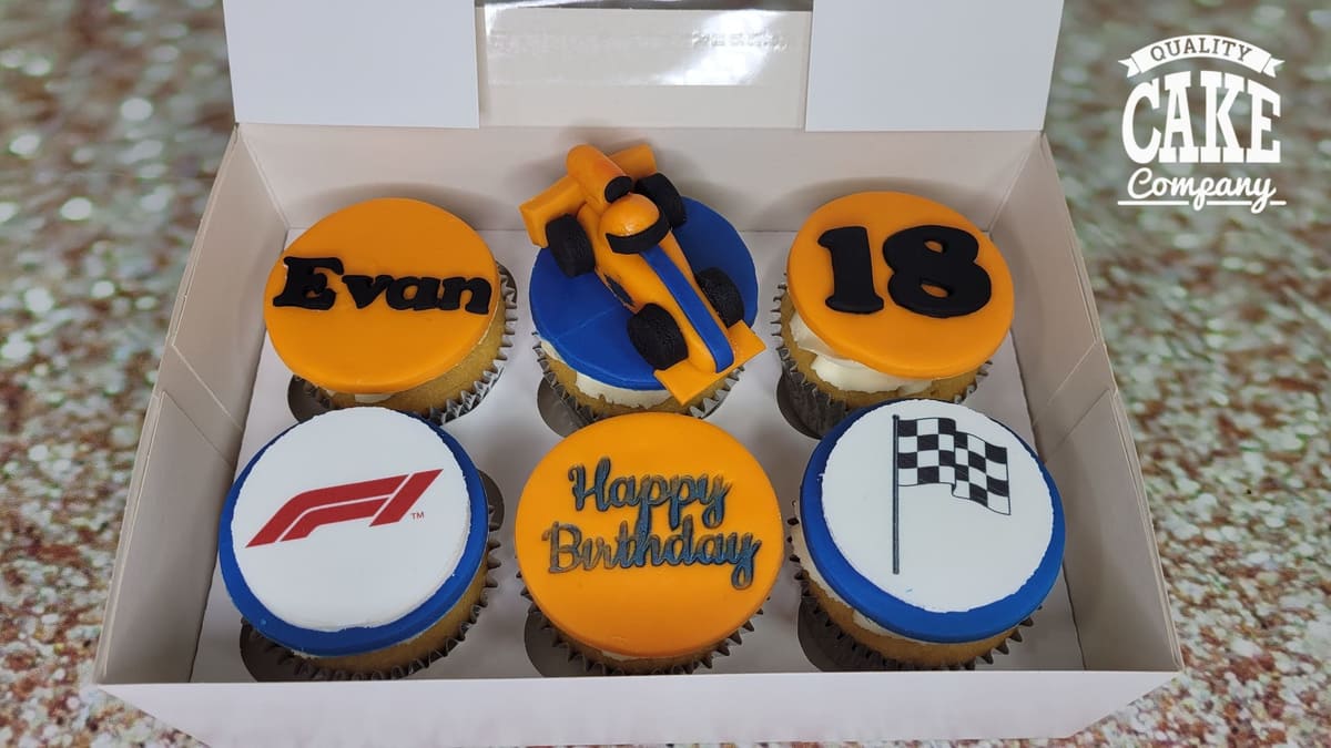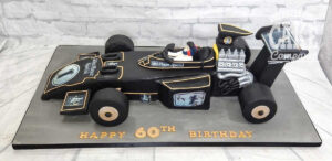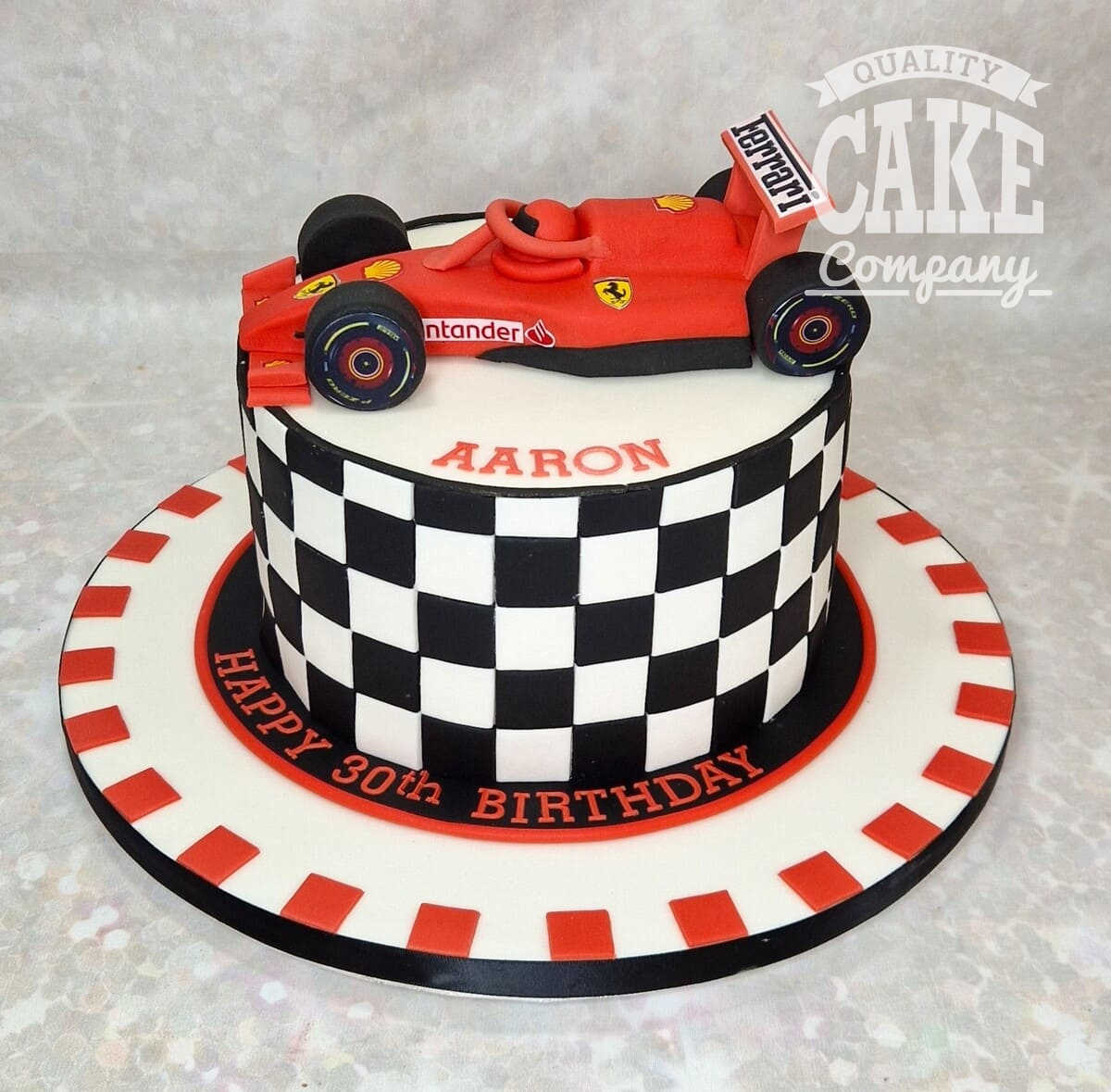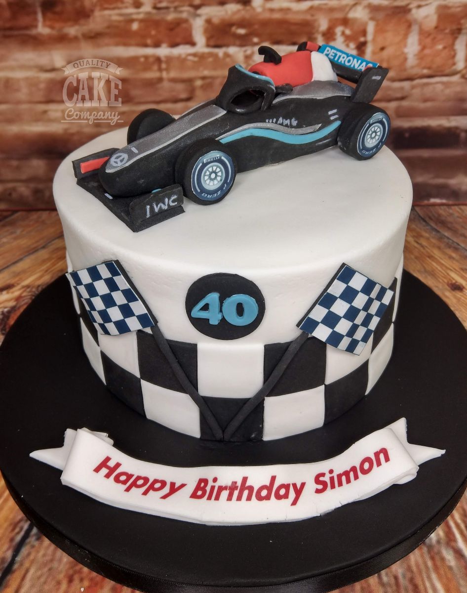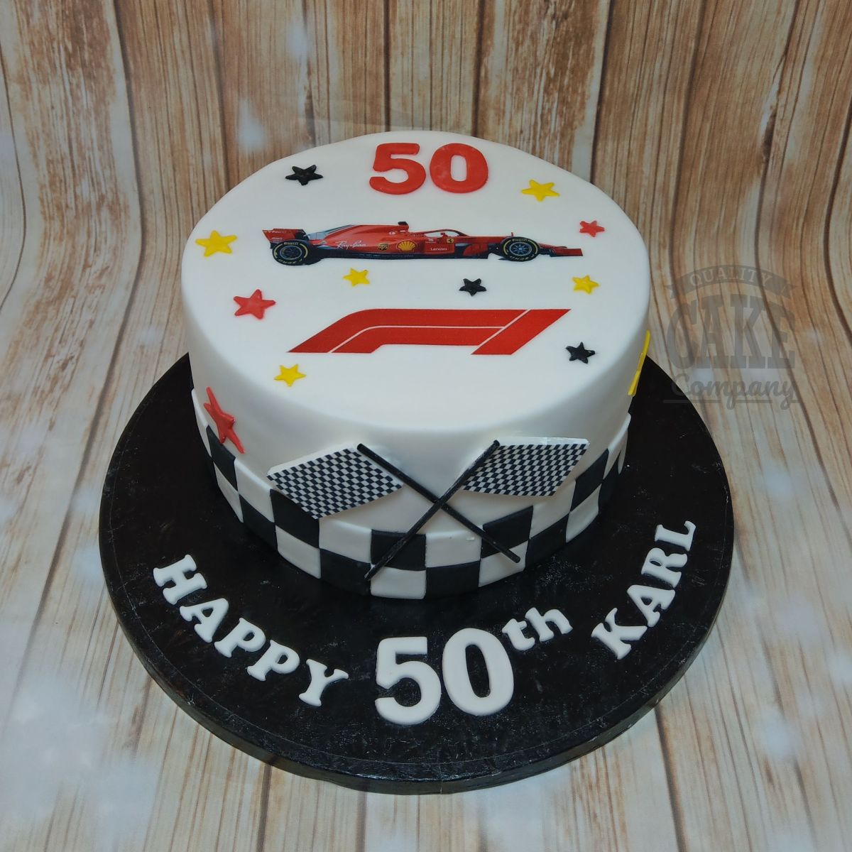 Choose from full 3D F1 car cakes, tiered cakes wrapped with checkered flag patterns, podium-style displays, racing helmets, personalised number plates, and edible toppers inspired by your favourite team or driver.