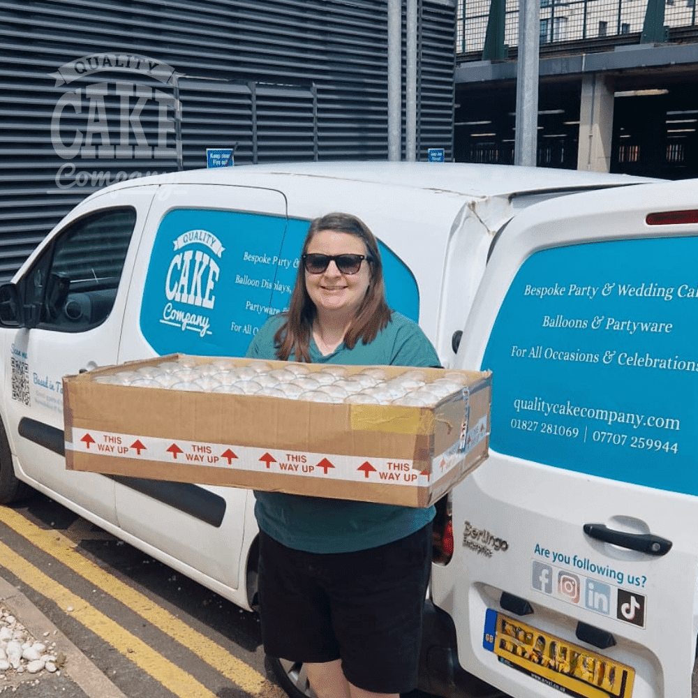 We offer a local delivery service, bringing your cakes and balloons to your event, all setup and ready and taking away additional work for you or your team.