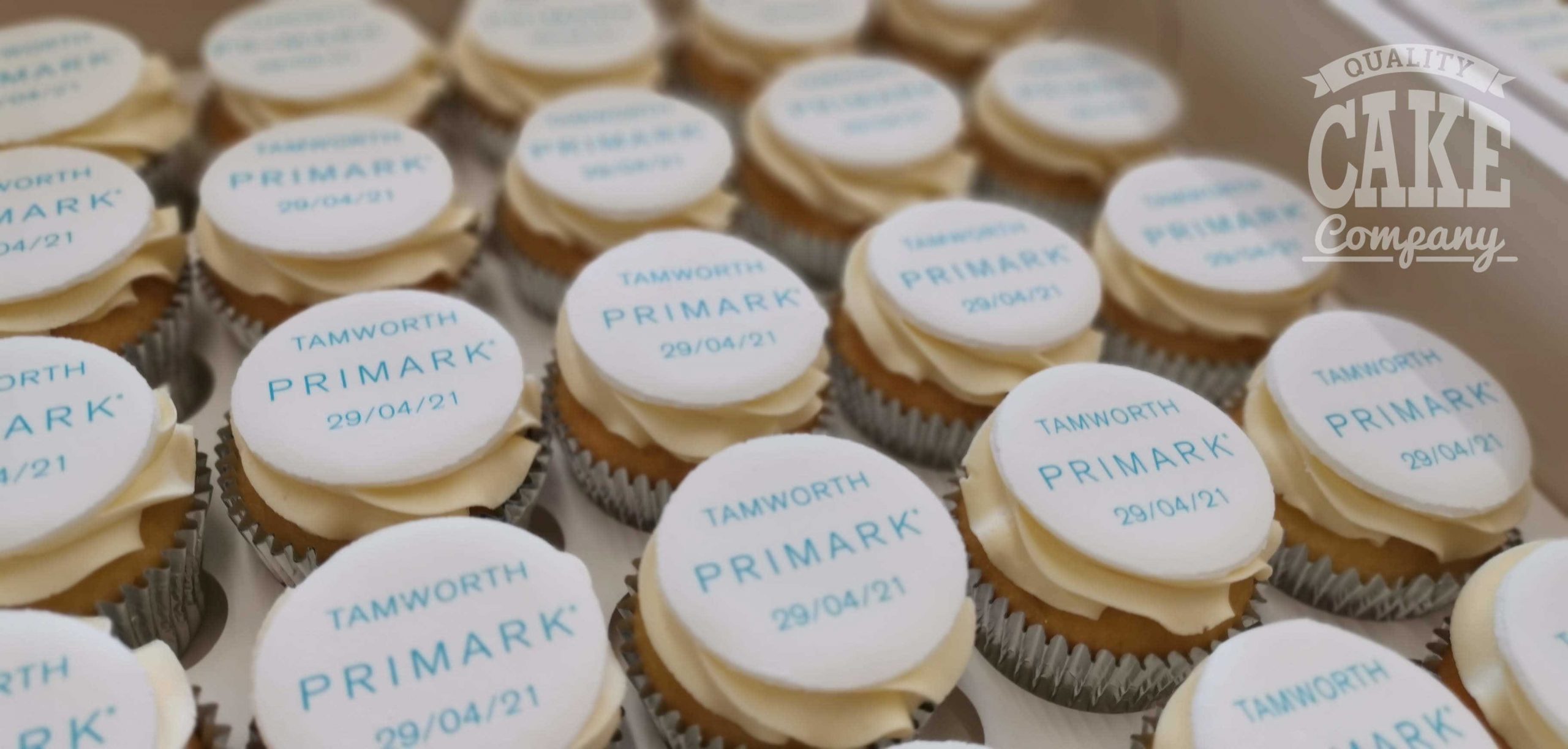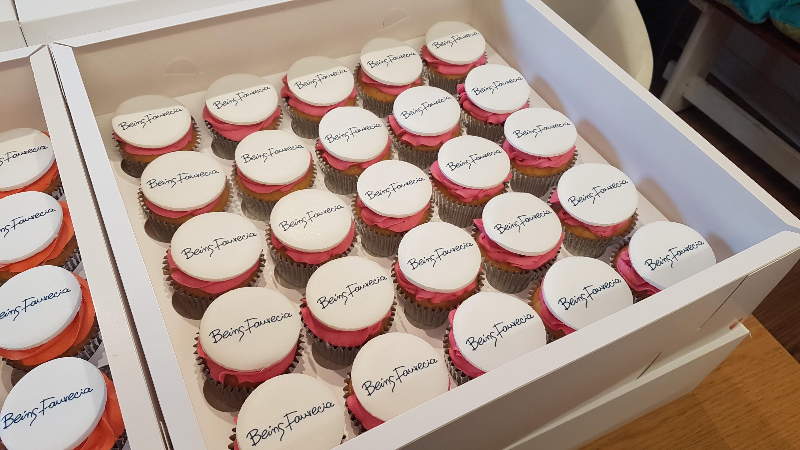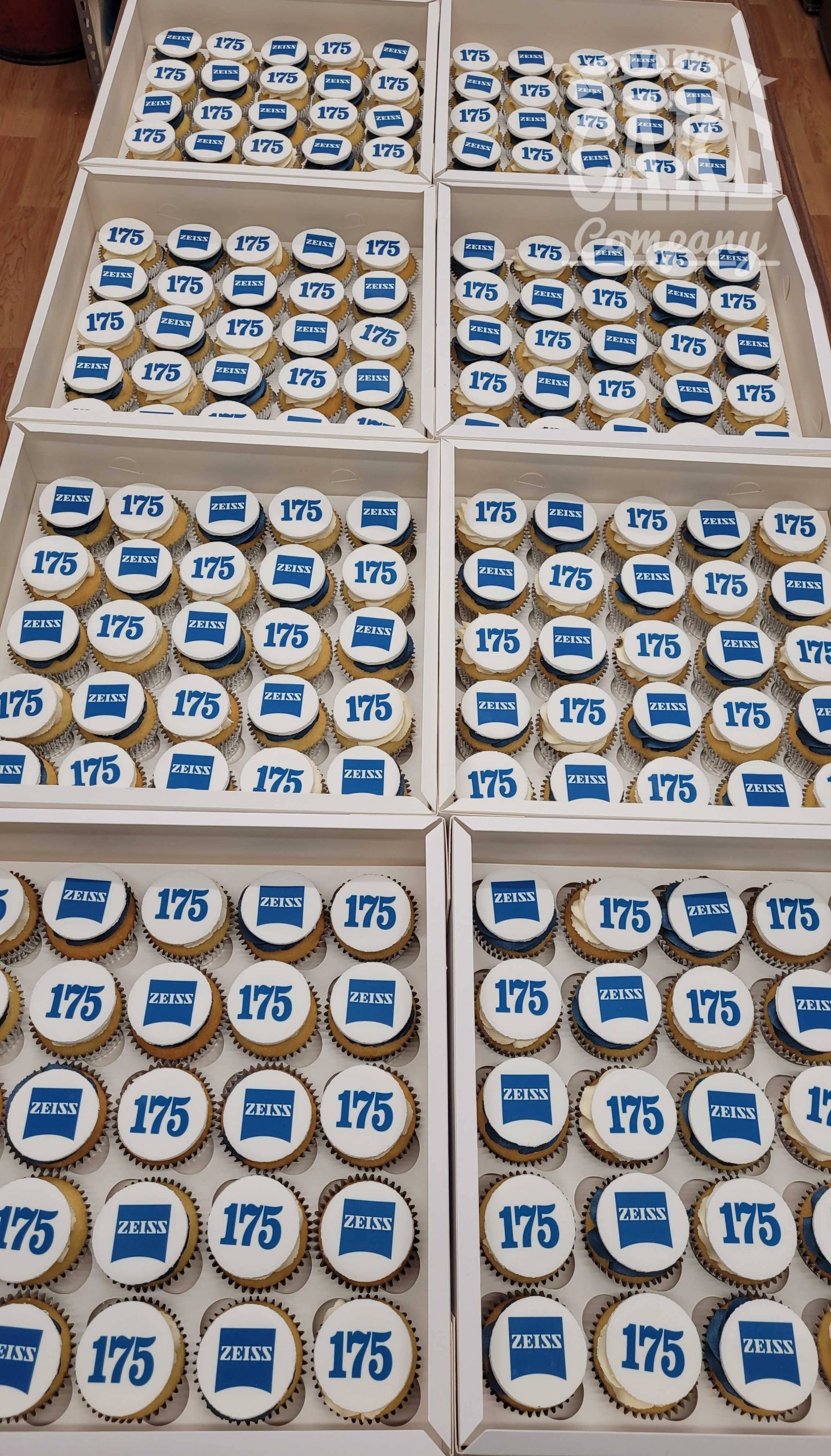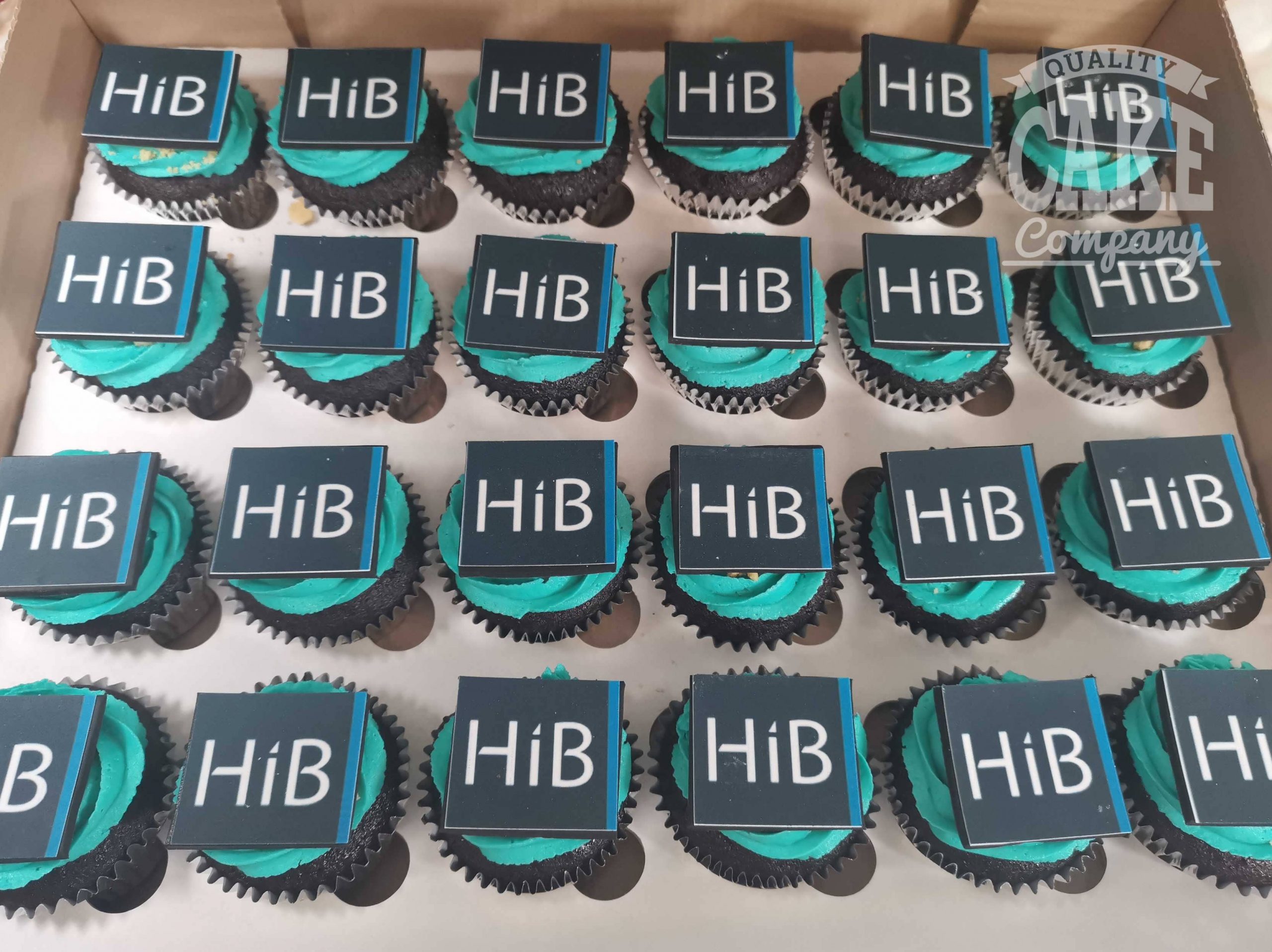 We box the cupcakes into trays of 24/25 (or in 12’s or 16’s), alternatively, we can individually box logo cupcakes for gifts or favours.