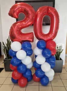 Shout those numbers loud and proud. Whether you’re celebrating a company anniversary or you’ve hit a target or business milestone. Number balloon columns create a great visual impact. Ideal for award shows, trade events or corporate dinners. These columns last for weeks. Lots of colour options are available.
