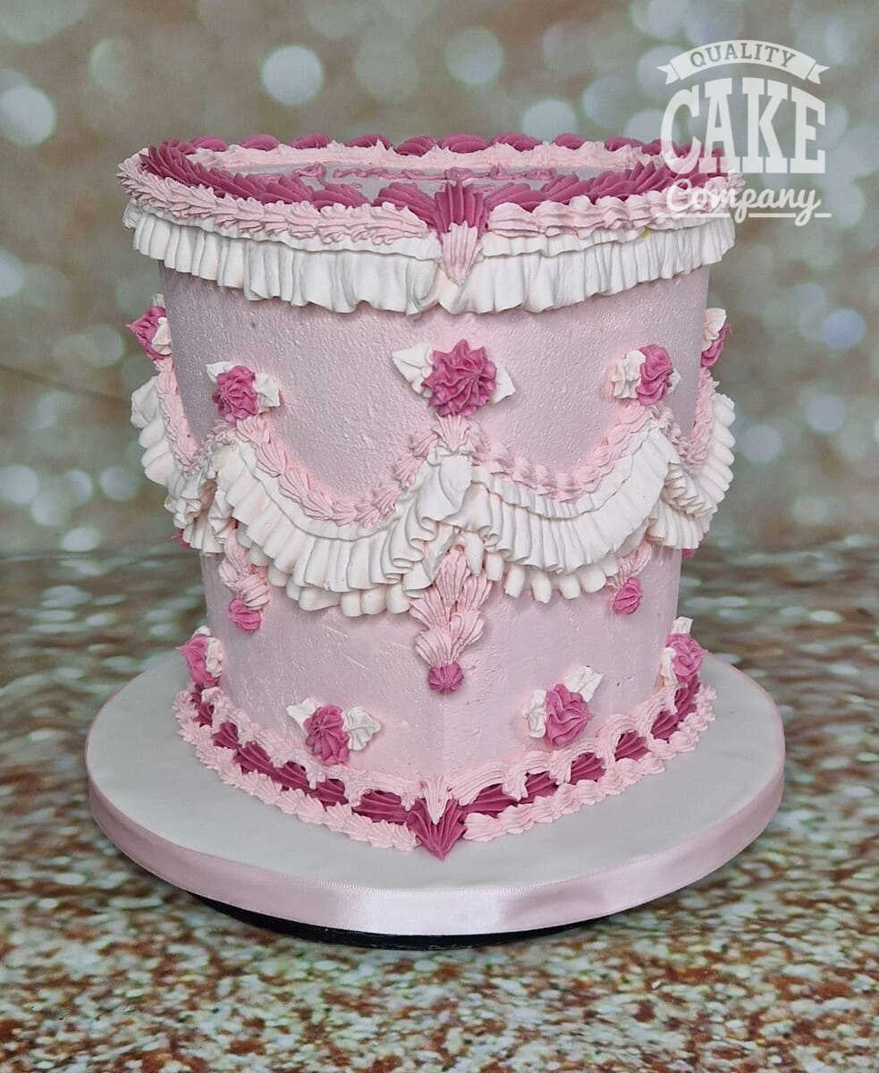 What is a Lambeth cake? This style of cake pays homage to Joseph Lambeth who was known for a very specific and ornate style of cake decorating. He used royal icing to create the most beautiful sugar craft masterpieces. Layers upon layers to create 3D patterns, scrolls, lace and flowers. This technique not only requires a lot of practice, it takes hours and hours of work. Nowadays we use sugarpaste and buttercream to make
