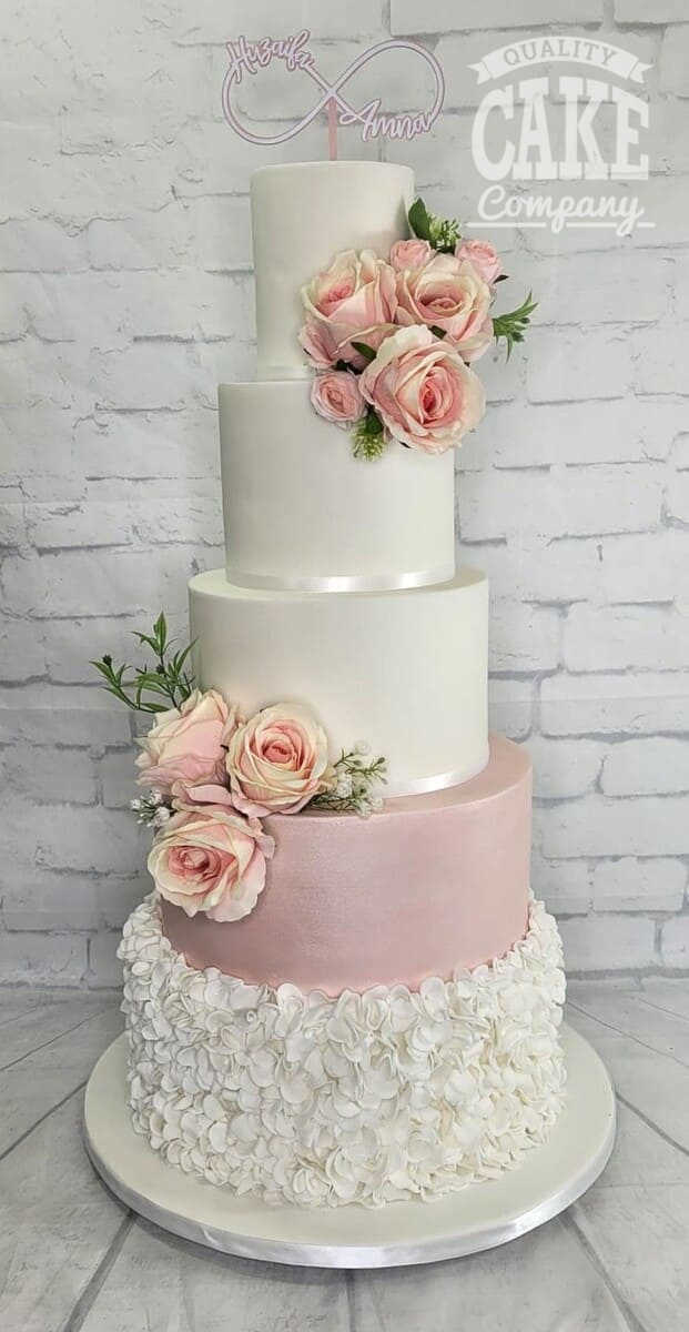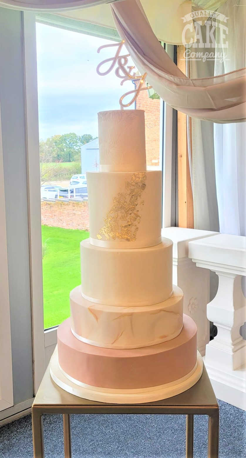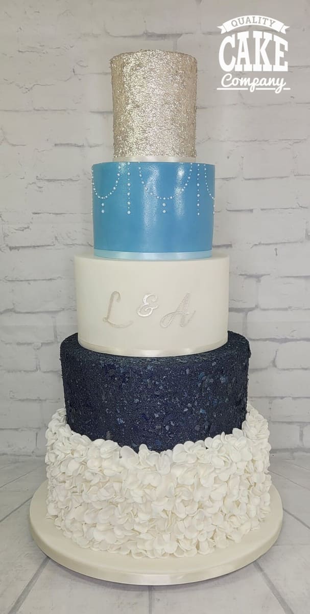 Five tiers are essential for large weddings with 150 guests or more. You don’t have to stop at five, we can do six tiers, seven tiers or even more! If you have fewer guests but you want a wow factor cake, we can always add artificial tiers, to give you the look of a large wedding cake.
