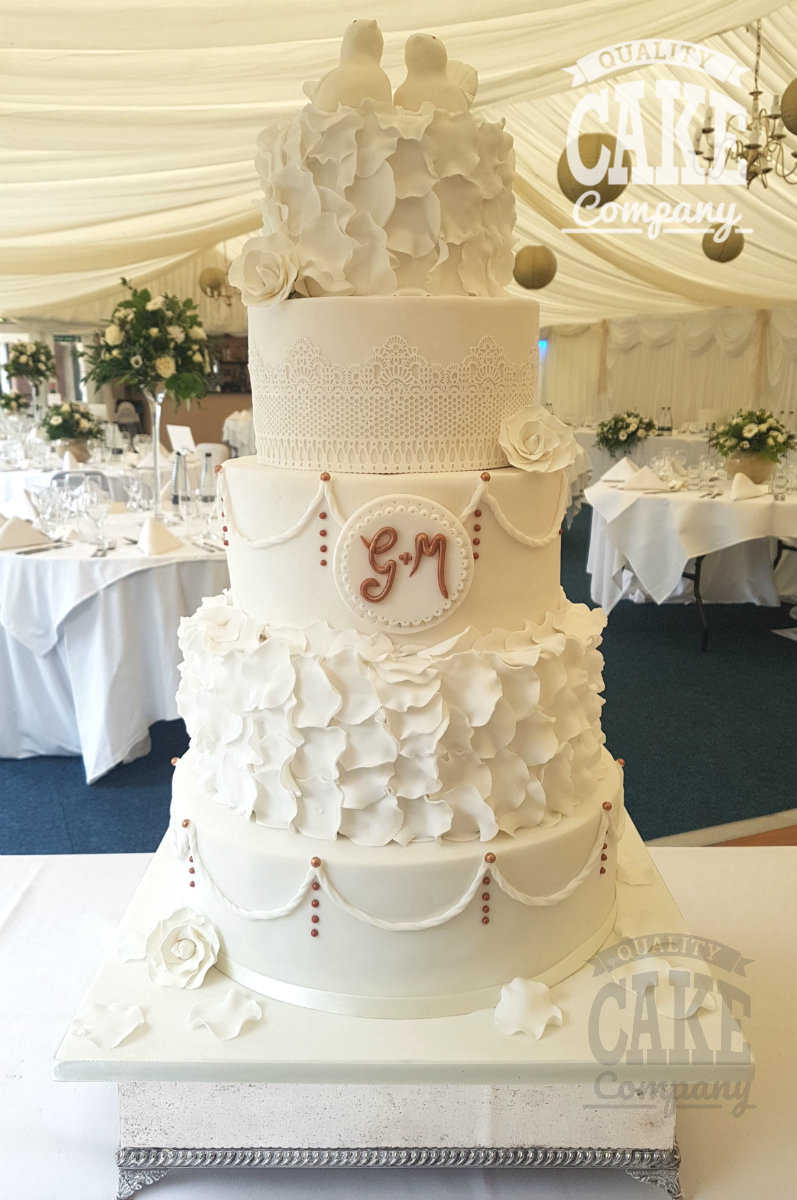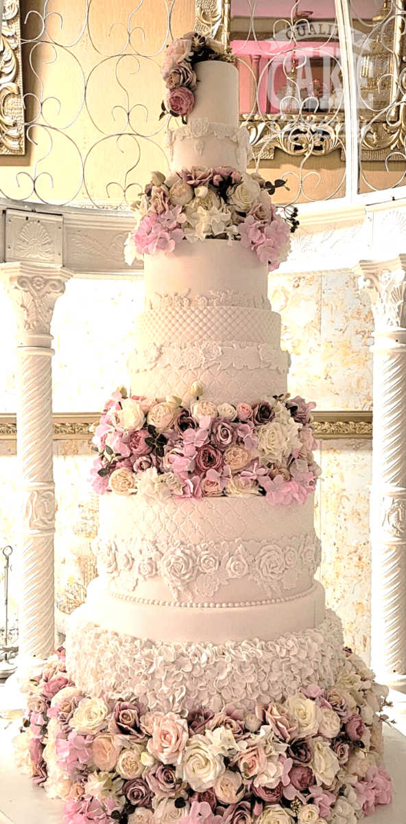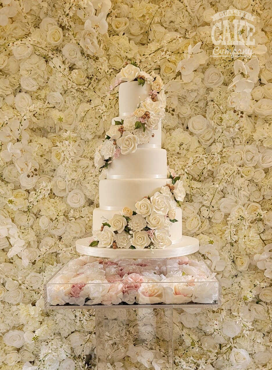 Browse our gallery below to see some of our large wedding cakes. Or see our four-tier wedding cake gallery for other large wedding cake ideas and inspiration. We can always customise other designs and add an extra tier to them.