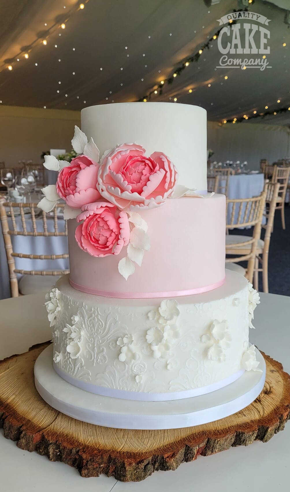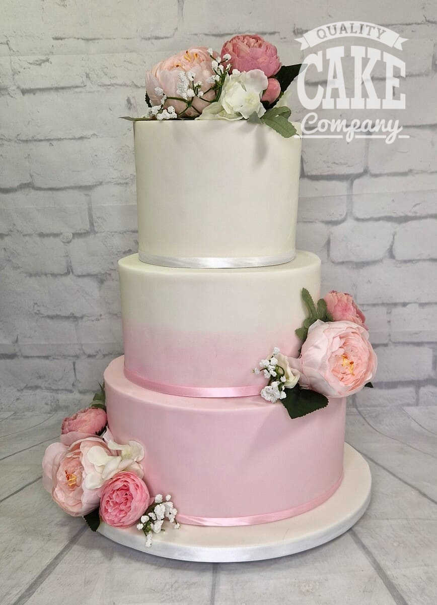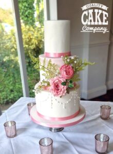 Pink wedding cakes are one of the most popular colours we do. It is soft and romantic and compliments the classic white wedding.