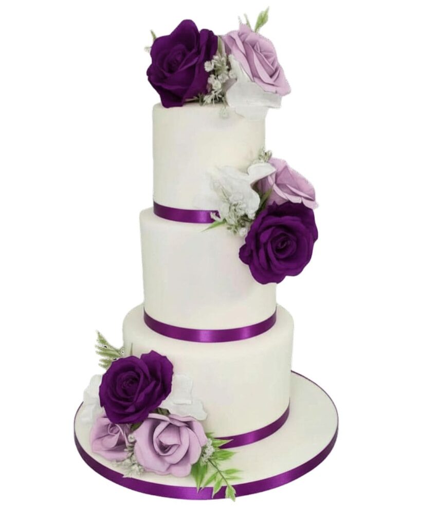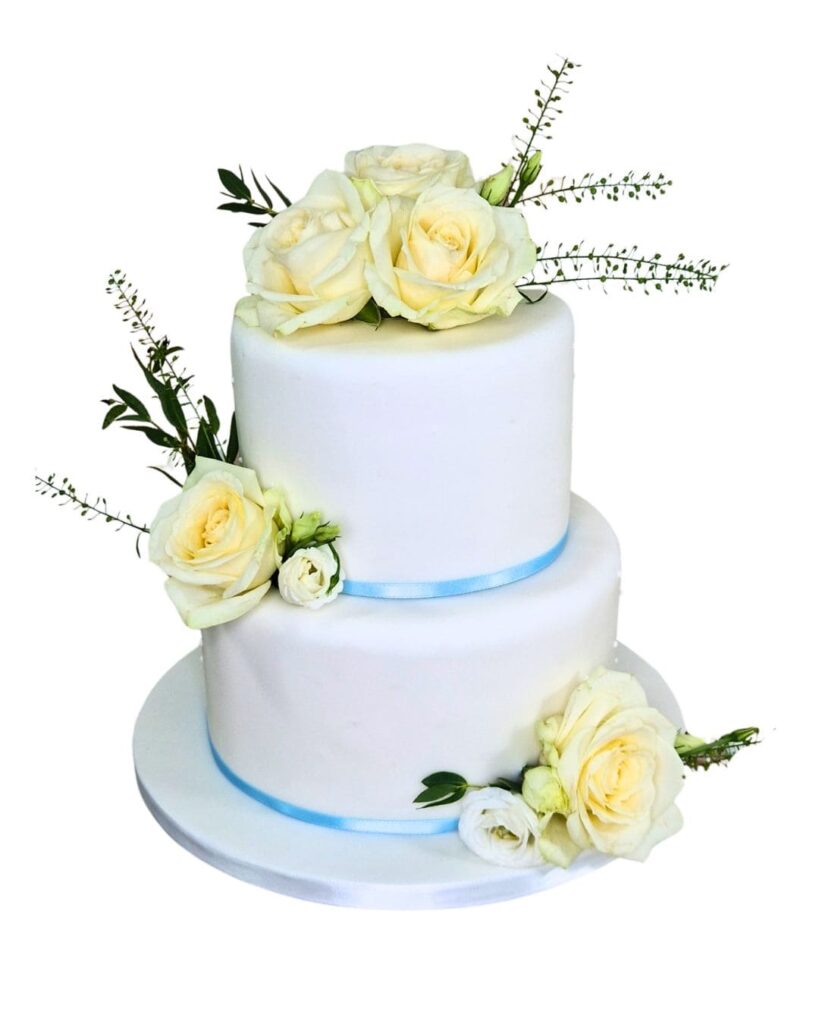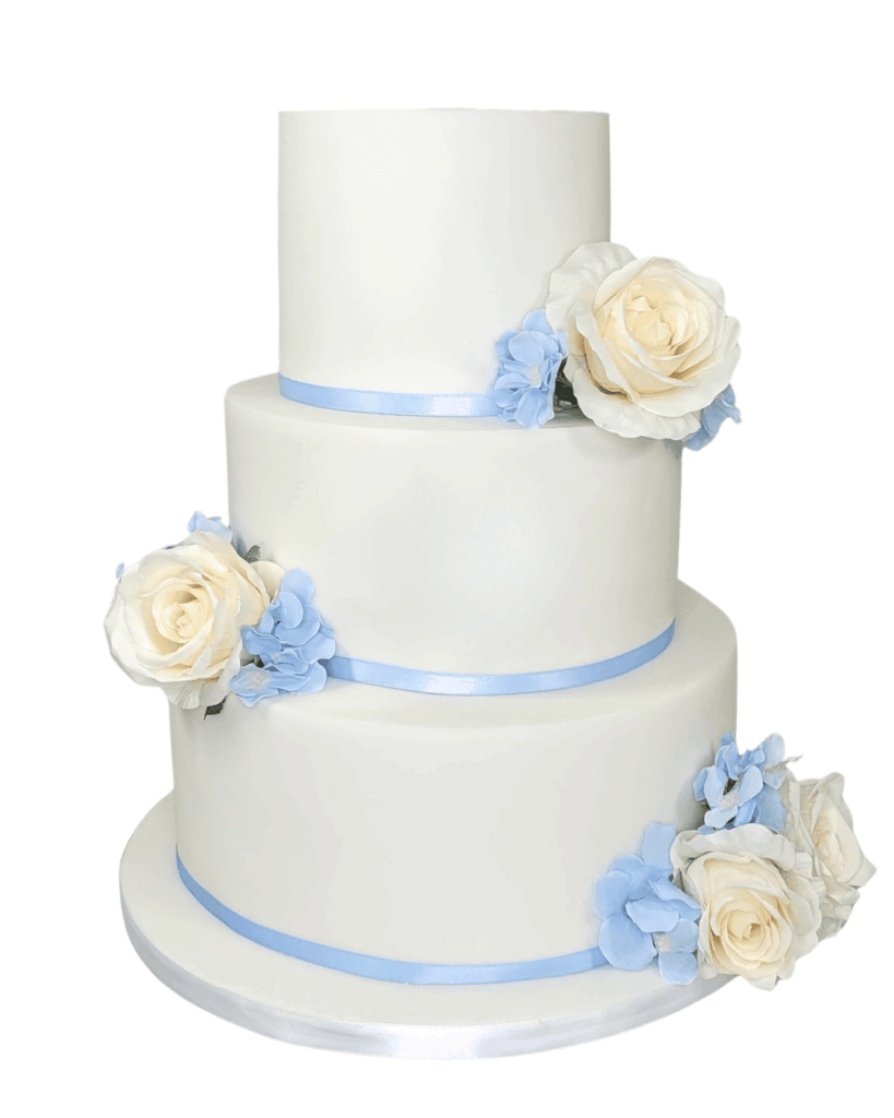 Our signature floral wedding cake is ideal for couples wanting a traditional look without unnecessary details. Finished with smooth icing, soft ribbon, and elegant floral accents.