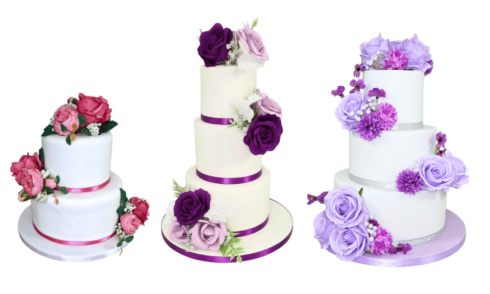 Classic Floral wedding cakes decorated with silk flower accents – from £220