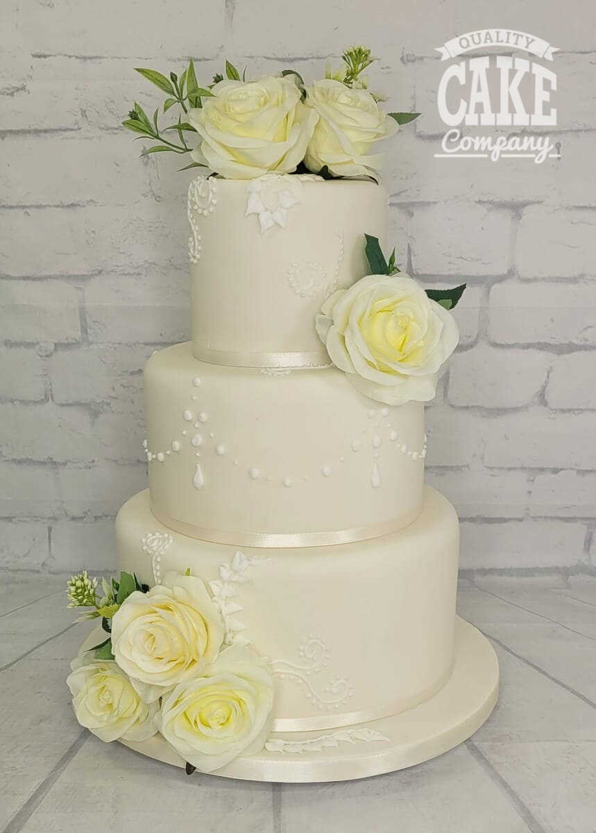If you want to inject some colour into your cake, we can do any of the designs shown here in any other colour. Be sure to browse our colourful wedding cakes for other colourful ideas and inspiration.